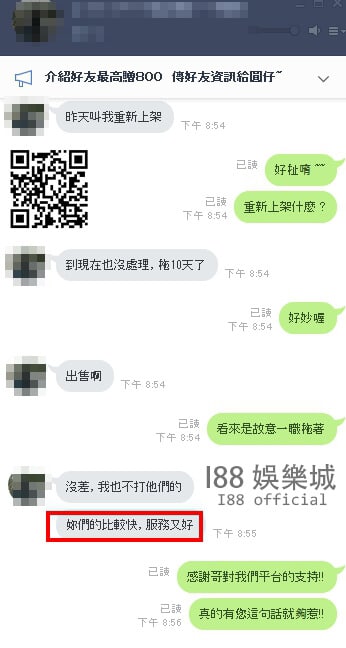 看了這麼多,如果大大們還是有選擇障礙的話,不妨可以先加入I88現金版,雖然我們沒有誘人的優惠,但透過我們的官方賴@可享有優越的多重服務如下↓